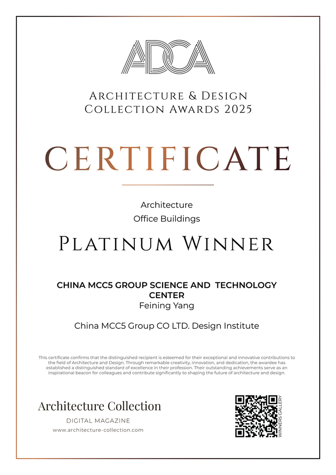 近日,《Architecture Collection》杂志2025建筑与设计收藏大奖Architecture & Design Collection Awards 2025(ADC Awards)揭晓获奖名单,中国五冶集团科技中心摘得专业组办公类最高荣誉铂金奖,成为办公类建成项目类别中唯一获奖的国内项目。