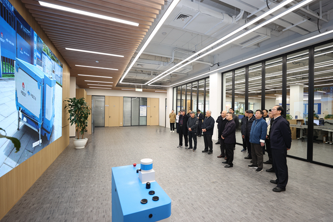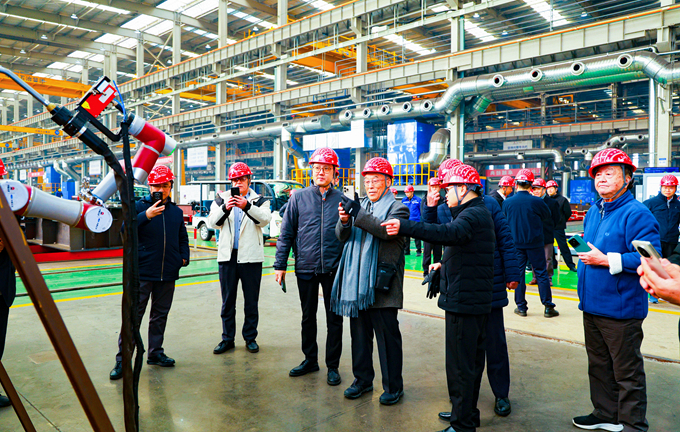 在中国五冶集团(成都)建筑科技产业园,退休领导们走进行业领先的装配式混凝土和钢结构智造基地,参观了国内首条全智能钢结构部件生产线、全自动无人化建筑钢结构智能生产线和业界集成化程度最高的桥梁、化工能源钢结构生产线以及工厂全生命周期智慧管控中心等设施,与现场人员就相关工艺流程、质量管控、市场推广及应用情况进行了交流。在四川综合节能率最高近零能耗建筑和全省唯一国家级认证零碳建筑——中国五冶集团科技中心,大家观看了公司自主研发的智慧低碳运维管理系统及智能建筑机器人产品演示,并参观了由院士等顶级科学家领衔的创新工作室和六大工程技术研究中心,了解公司在科技研发和新质生产力培育等方面的新举措、新成效。在项目远程管控中心和公司展厅,大家细致了解了五冶集团数字化企业大脑建设情况,以及打造全产业链顶级服务商取得的新业绩、新成果。