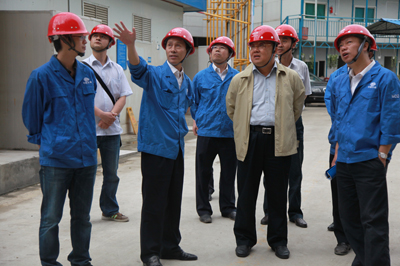 程并强深入现场详细询问了工程概况以及目前工程的进展情况,在听取了工程介绍后,对项目部所作的工作给予了肯定,尤其是在仔细查看了公司自己设计的西南最远第一悬挑:即悬挑最远处为27.8米,最大单重18吨的构件后非常满意。