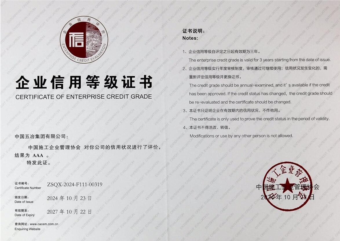 全国施工企业AAA信用等级